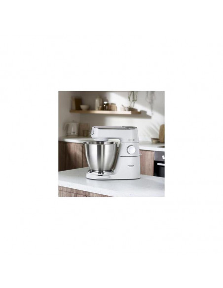 **Potência e Precisão:** Equipado com um potente motor de 1200W e controlo de velocidade infinitamente variável, o KVL65.001WH permite um controlo preciso sobre o processo de mistura, garantindo resultados impecáveis, quer seja a bater claras em castelo, a amassar massa ou a misturar ingredientes mais densos. A função de arranque suave previne salpicos e garante uma mistura uniforme.
