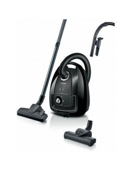 Bosch Serie 4 BGB38BA3T. Potência máxima de entrada: 850 W. Tipo: Aspirador cilíndrico, Tipo de limpeza: Seco, Tipo de coletor de pó: Saco de pó, Capacidade de pó: 4 l. Filtro de ar de aspirador: HEPA, Método de separação do lixo: Filtrante, Nível de ruído: 79 dB. Cor do produto: Preto