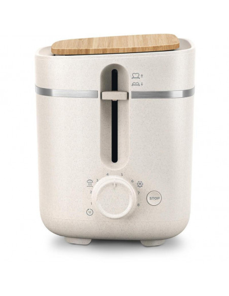 A tostadora Philips HD2640/10 da Série 5000 é uma opção ecológica e eficiente. Com design compacto de 2 ranhuras, oferece 8 níveis de tostagem ajustáveis para o seu gosto. Fabricada com plásticos 100% bio-based, é uma escolha sustentável para a sua cozinha. Inclui funções de descongelar e reaquecer.