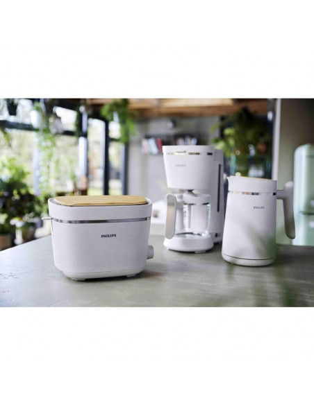 A tostadora Philips HD2640/10 da Série 5000 é a escolha perfeita para quem procura uma tostadora eficiente, compacta e amiga do ambiente.  Com um design elegante em branco mate, esta tostadora de duas ranhuras integra a filosofia Eco Conscious Edition da Philips, sendo produzida com plásticos 100% bio-based, um compromisso com a sustentabilidade.  O seu tamanho compacto torna-a ideal para cozinhas de qualquer dimensão, sem comprometer a funcionalidade.