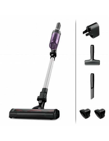 Rowenta X-NANO ESSENTIAL RH1129WO. Tipo de limpeza: Seco, Método de separação do lixo: Ciclónico, Nível de ruído: 82 dB. Tipo de coletor de pó: Sem bolsa, Cor do produto: Roxo, Alumínio, Forma da escova: Retangular. Fonte de alimentação: Bateria, Tempo de funcionamento: 40 min, Tempo de carga: 3 h. Peso: 2,21 kg, Largura: 24,5 mm, Profundidade: 24,8 mm. Comprimento da embalagem: 118 mm, Profundidade da embalagem: 620 mm, Altura da embalagem: 340 mm
