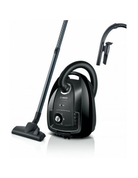Bosch Serie 4 BGB38BA1. Potência máxima de entrada: 600 W. Tipo: Aspirador cilíndrico, Tipo de limpeza: Seco, Tipo de coletor de pó: Saco de pó, Capacidade de pó: 4 l. Filtro de ar de aspirador: HEPA, Método de separação do lixo: Multi ciclónico, Nível de ruído: 79 dB. Cor do produto: Preto