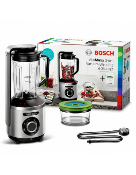 Bosch MMBV622M. Capacidade da tigela: 1,5 l, Tipo de controlo: Botões, Rotativo, Capacidade da tigela para triturados: 1,5 l. Tipo: Liquidificador, Cor do produto: Preto, Aço inoxidável. Material do corpo do produto: Alumínio, Material da lâmina: Aço inoxidável. Potência: 1000 W, Fonte de alimentação: AC, Voltagem de entrada AC: 220 - 240 V. Largura: 191 mm, Profundidade: 195 mm, Altura: 438 mm