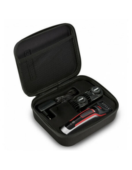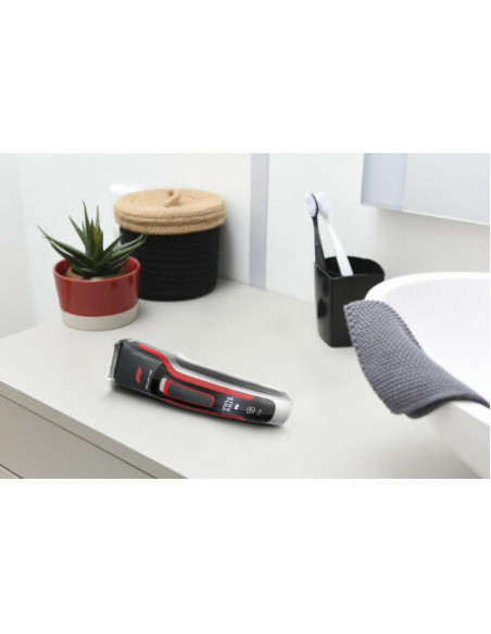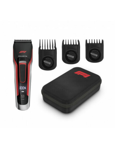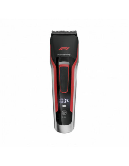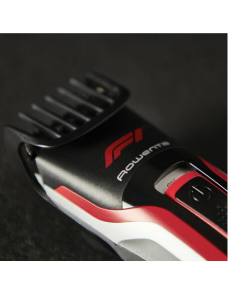 Rowenta Advancer F1 TN524MF0. Cor do produto: Preto, Vermelho, Comprimento mínimo do cabelo: 0,5 mm, Comprimento máximo do cabelo: 3 cm. Indicadores LED: Carregamento. Fonte de alimentação: AC/Bateria, Tempo de funcionamento: 120 min, Tipo de bateria: Bateria incorporada. Largura: 44 mm, Altura: 40 mm, Peso: 250 g. Tipo de pente: Ajustável, Pentes anexados: Barba