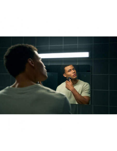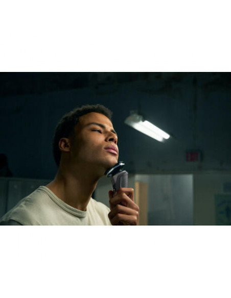 Barbear eficaz e suave para a pele com tecnologia SkinIQ A Philips Series 5000 proporciona um barbear eficaz, cortando agora ainda mais pelos a cada passagem*. Equipada com tecnologia SkinIQ avançada, a máquina de barbear deteta e adapta-se à densidade da barba, para um maior conforto da pele.