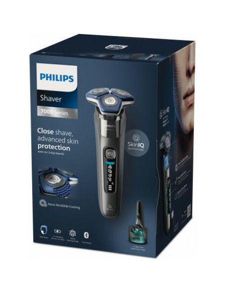 Barbear apurado, proteção avançada da pele com tecnologia SkinIQ A Philips Series 7000 desliza suavemente sobre a sua pele, cortando cada pelo rente, mesmo em barbas de 3 dias. Equipada com tecnologia SkinIQ avançada, a máquina de barbear deteta, adapta-se à densidade da barba e orienta o movimento correto, para um maior conforto da pele.