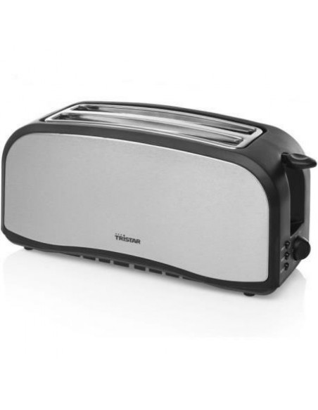 TOSTADOR doble ranura larga INOX . 1400 W ? Carcasa de acero inoxidable ? 2 ranuras largas ? 6 funciones de tostado? Funcion de descongelar ? Funcion de cancelar ? Funcion de recalentar? Funcion expulsion automatica.? Bandeja para migas extraible ? Soporte para pan? Base antideslizante ? 1400 Watt