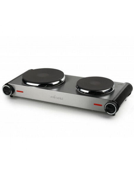 Tristar KP-6248 Placa doble de cocción. Color del producto: Acero inoxidable, Tipo de instalación: Encimera, Tipo de quemador: Hornillo eléctrico / Placa eléctrica. Tipo de control: Giratorio, Control de posición: Frente, Indicadores LED: Poder. Peso: 3,85 kg, Ancho del paquete: 264 mm, Profundidad del paquete: 565 mm