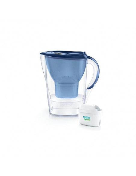Brita Marella. Tipo de filtro de água: Filtro de água do distribuidor, Cor do produto: Azul, Transparente, Volume do depósito de água: 2,4 l. Largura: 258 mm, Profundidade: 105 mm, Altura: 258 mm. Quantidade de cartuchos: 2 unidade(s), Quantidade por conjunto: 1 unidade(s) ;