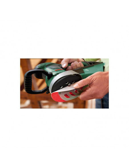 Bosch PEX 400 AE. Tipo de lixadora: Lixadora orbital, Fixação da cinta de lixamento: Velcro, Cor do produto: Preto, Verde, Prateado. Taxa de oscilação em vazio (mín.): 4000 OPM, Taxa de oscilação em vazio (máx.): 21200 OPM, Diâmetro da órbita: 5 mm. Fonte de alimentação: AC, Potência de input: 350 W, Voltagem de entrada AC: 230 V. Peso: 1,9 kg, Diâmetro do disco de lixa: 12,5 cm. Emissão de vibração: 8 m/s², Incerteza K: 1,5 m/s² ;