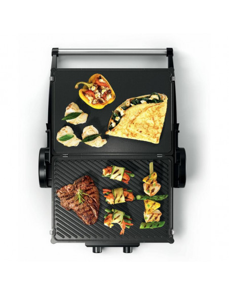 A grelha elétrica de contacto Bosch TCG4104, com o seu design compacto e cor vermelha vibrante, é uma adição elegante e prática a qualquer cozinha. Com uma potência de 2000W, aquece rapidamente e garante um cozimento uniforme dos seus alimentos. As placas antiaderentes facilitam a preparação e a limpeza, enquanto a bandeja de gotejamento recolhe os excessos de gordura, contribuindo para uma cozinha mais limpa e organizada. As placas são removíveis, facilitando ainda mais a limpeza. A construção robusta em metal garante durabilidade e segurança. O controlo de temperatura rotativo permite ajustar o nível de calor de acordo com as suas necessidades, enquanto o piloto luminoso indica quando o aparelho está a funcionar. A Bosch TCG4104 é perfeita para grelhar carnes, legumes, sandes e muito mais. Para mais informações, consulte o manual do utilizador ou o site do fabricante. A sua base antiderrapante garante estabilidade durante o uso. As dimensões compactas permitem que seja guardada facilmente. Inclui as características de segurança e certificações CE e VDE.