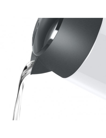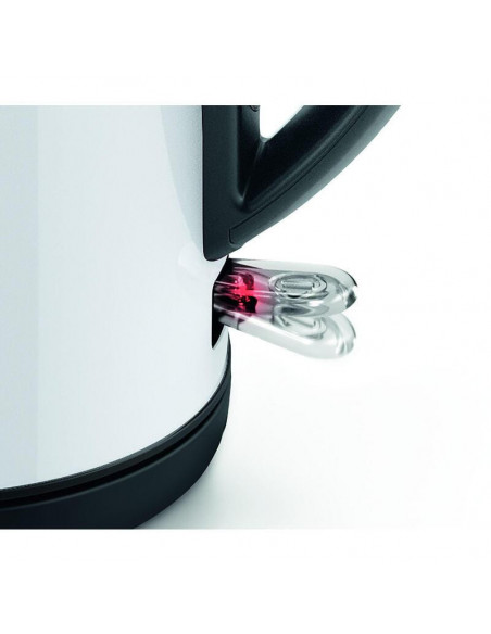Além da proteção contra sobreaquecimento e funcionamento a seco, a chaleira incorpora um sistema de desligamento automático, que desliga o aparelho assim que a água atinge a temperatura de ebulição. Este recurso evita o desperdício de energia e ajuda a prolongar a vida útil da chaleira. O seu funcionamento é facilitado por um interruptor de ligar/desligar iluminado, que lhe permite monitorizar o estado da chaleira de forma rápida e intuitiva. A base giratória 360° permite que a chaleira seja colocada na base em qualquer posição, para maior praticidade.