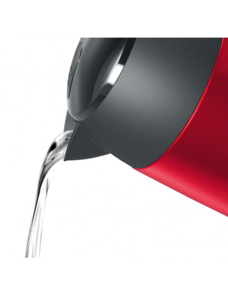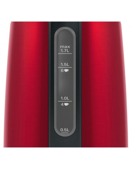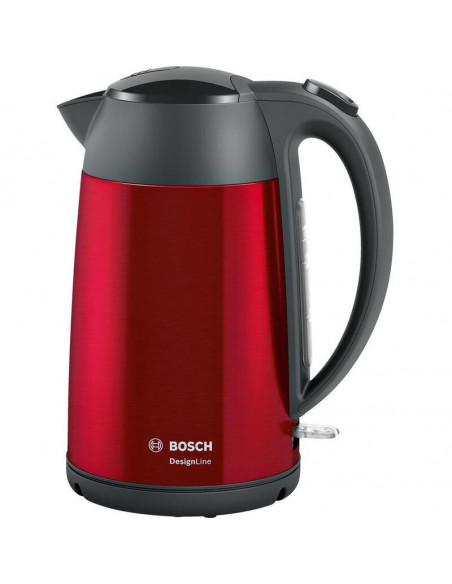 O hervidor de água Bosch Designline TWK3P424 é a solução perfeita para quem procura rapidez e praticidade no preparo de bebidas quentes. Com uma capacidade de 1,7 litros, este elegante hervidor satisfaz as necessidades de toda a família. Seu design moderno, em aço inoxidável com detalhes em vermelho e cinza, se integra harmoniosamente a qualquer cozinha.
