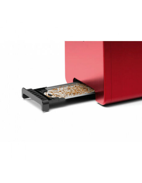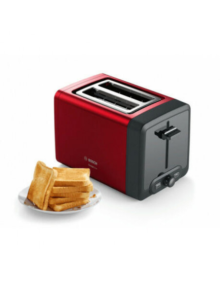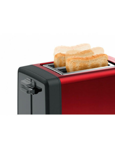 Bosch DesignLine TAT4P424 - Toaster - 2 Scheibe. Número de fatias: 2 fatia(s), Cor do produto: Preto, Vermelho, Tipo de controlo: Nível, Rotativo. Potência: 970 W, Voltagem de entrada AC: 220-240 V, Frequência de entrada AC: 50/60 Hz. Comprimento do fio: 0,9 m, Largura: 300 mm, Profundidade: 170 mm. Comprimento da embalagem: 206 mm, Largura da embalagem: 342 mm, Altura da embalagem: 220 mm