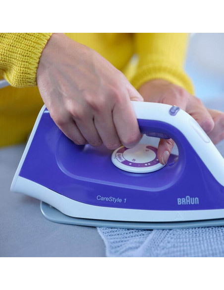 O Centro de Planchado Braun CareStyle 1 IS1012BL oferece um sistema de engomar potente e eficiente. Com 2400W de potência e 5,5 bares de pressão, garante resultados impecáveis.  A sua tecnologia avançada proporciona um vapor contínuo de 110g/min e picos de 340g/min, para remover até os vincos mais difíceis. A base de cerâmica garante um deslizamento suave e sem esforço.