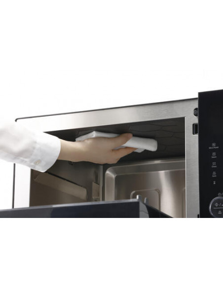 Este microondas combinado proporciona uma experiência de utilização intuitiva, graças ao seu visor LED incorporado. O visor permite controlar facilmente as diferentes funções, tempo de cozinhar e potência, assegurando resultados perfeitos a cada utilização. O seu design compacto e elegante torna-o ideal para cozinhas modernas e compactas, integrando-se perfeitamente sem comprometer a funcionalidade. A sua construção robusta garante durabilidade e confiabilidade, permitindo que desfrute do NN-DS59NBEPG durante muito tempo.