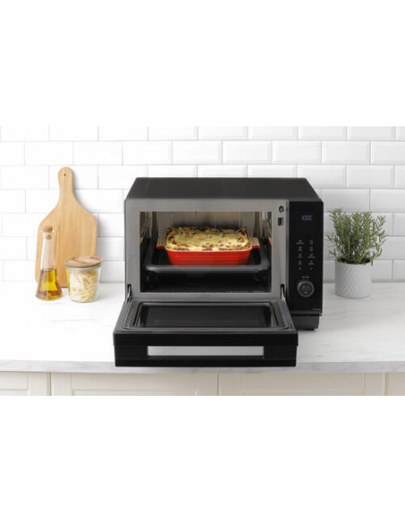 O Microondas Combinado Panasonic NN-DS59NBEPG é uma solução versátil e eficiente para preparar as suas refeições. Com uma capacidade generosa de 27 litros e uma potência de 1000 W, este forno combina as funcionalidades de um microondas, grill e forno a vapor, oferecendo uma ampla gama de opções de cozinhar.  Seja para aquecer rapidamente os seus pratos, grelhar deliciosas refeições ou cozinhar a vapor de forma saudável, o NN-DS59NBEPG adapta-se às suas necessidades.