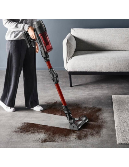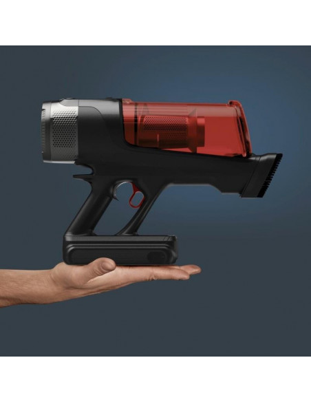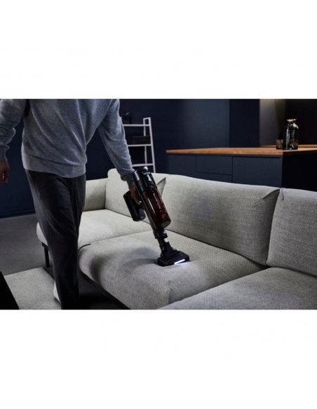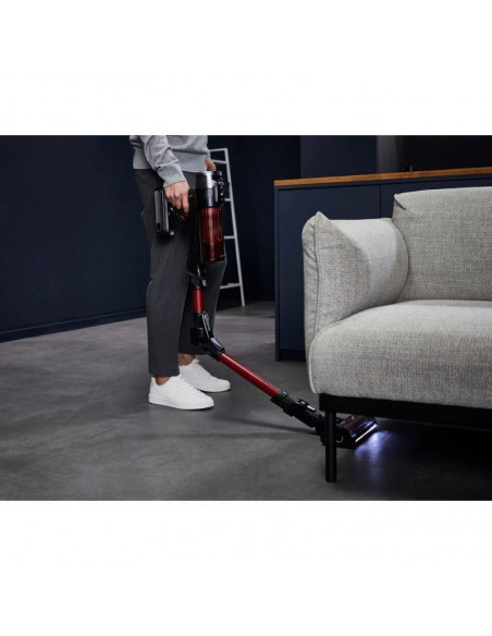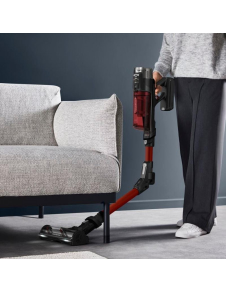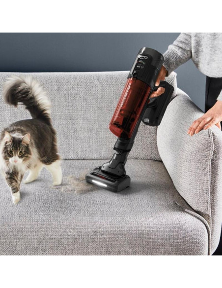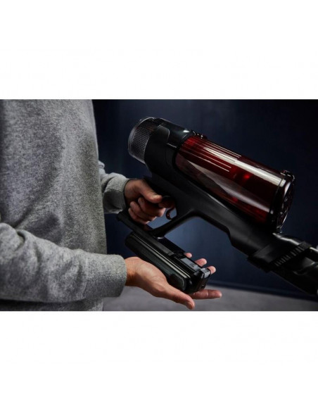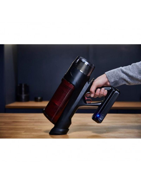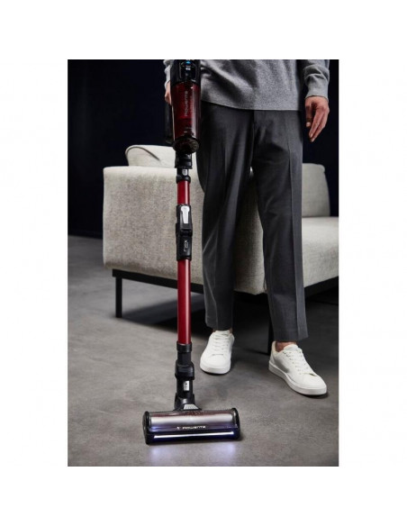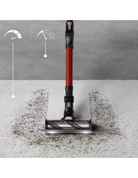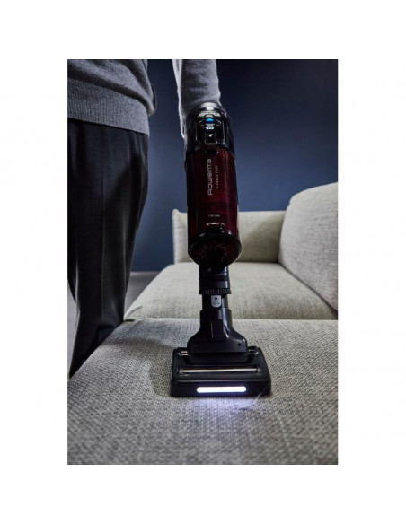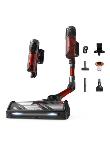 Rowenta RH9A73WO. Tipo de produto: Aspirador vertical 2 em 1, Tipo de coletor de pó: Sem bolsa, Cor do produto: Preto, Vermelho. Tipo de limpeza: Seco, Método de separação do lixo: Ciclónico, Nível de ruído: 83 dB. Controlo de potência: Automático. Fonte de alimentação: Bateria, Tecnologia da bateria: Ião-lítio, Tempo de funcionamento: 60 min. Bico especial: mini LED Turbo Brush ;