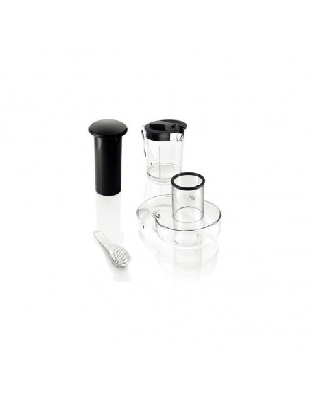 Outros recursos úteis incluem o sistema de armazenamento de cabo, base antiderrapante, interruptor de segurança e peças aptas para lava-louças, que simplificam significativamente o seu uso e manutenção. O aparelho possui ainda uma pinça de segurança, tampa com orifício de enchimento e um elemento de empurrar em plástico.