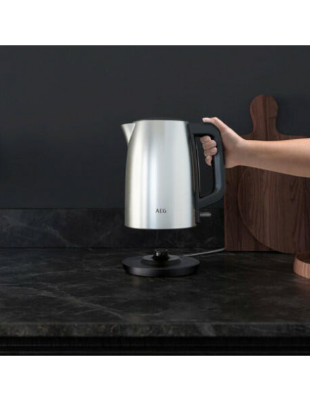 AEG K3-1-3ST. Volume do depósito de água: 1,7 l. Potência: 1850 W. Cor do produto: Aço inoxidável, Material do corpo do produto: Aço inoxidável, Indicador do nível de água. Sem fios. Filtragem