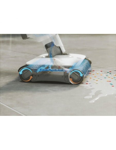 HW5 O primeiro aspirador Poeiras&Líquidos sem fio da Hoover proporciona o dobro da limpeza em metade do tempo, com um sistema de rolos duplos!