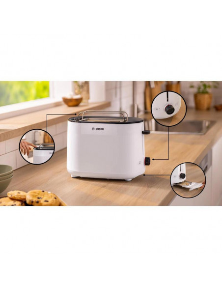 Tostadora Bosch MyMoment TAT2M121 - Branca, 2 Fatias, Funções Descongelar e Reaquecer