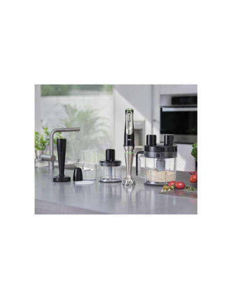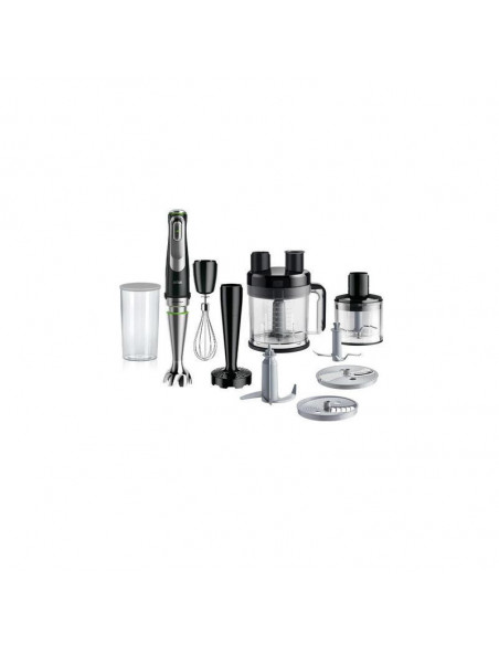 A batidora de imersão Braun MultiQuick 9 MQ9187XLI é a solução perfeita para quem procura um equipamento potente e versátil para a cozinha.  Com um motor de 1200W, esta batidora proporciona um desempenho superior, ideal para preparar uma variedade de pratos, desde sopas cremosas a purés, molhos e muito mais. O seu design ergonómico e os seus acessórios cuidadosamente concebidos garantem uma utilização simples e eficiente.