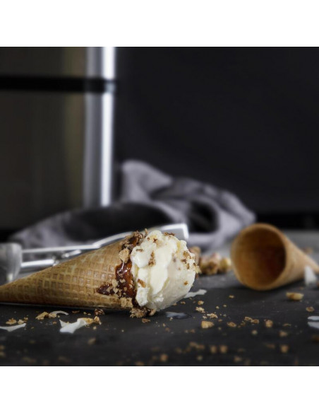 O recipiente desta máquina de gelados Princess tem a capacidade de 1,5 litros, suficiente para toda a família. O recipiente removível deve ser colocado no congelador pelo menos 8 horas antes de utilizar, para que esteja suficientemente frio e possa transformar uma mistura cremosa num delicioso gelado de baunilha em apenas 20 minutos. O prático temporizador é fácil de ajustar, permitindo-lhe também preparar sorbetes e iogurtes congelados.