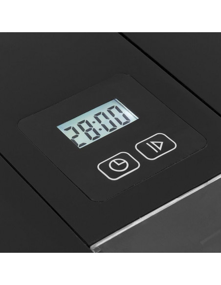 * Fácil de usar, com um prático ecrã LCD (embora não explicitamente mencionado, a descrição sugere a presença de um ecrã para ajustar o temporizador).