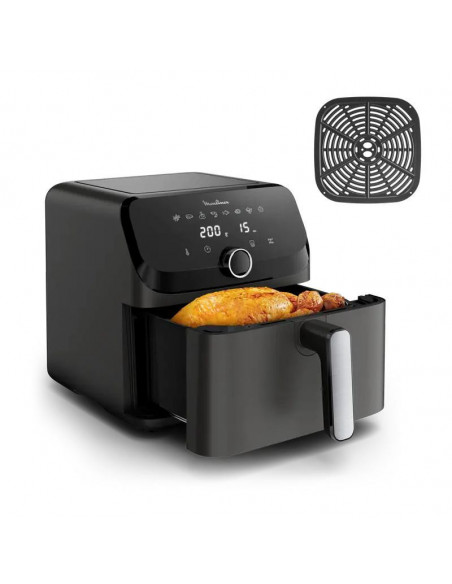 Moulinex Easy Fry Mega EZ855HF0. Tipo de produto: Fritadeira a ar quente, Capacidade: 7,5 l, Temperatura (mín.): 80 °C. Tipo de construção: Individual, Cor do produto: Preto, Cinzento, Tipo de controlo: Rotativo, Toque. Tipo de monitor: LCD. Potência: 2020 W. Largura: 310 mm, Profundidade: 396 mm, Altura: 315 mm ;