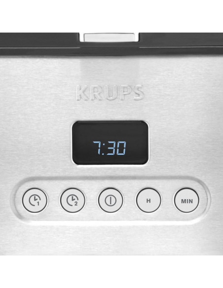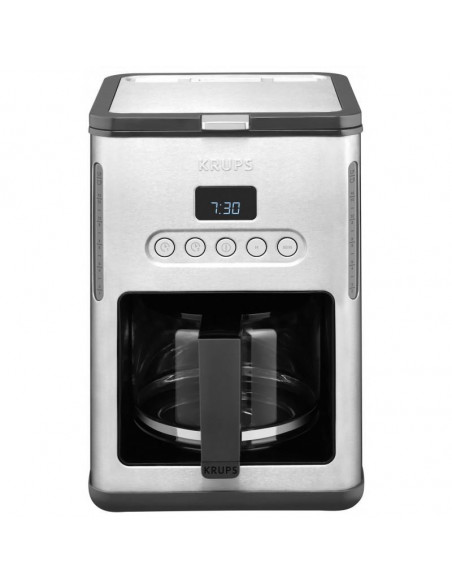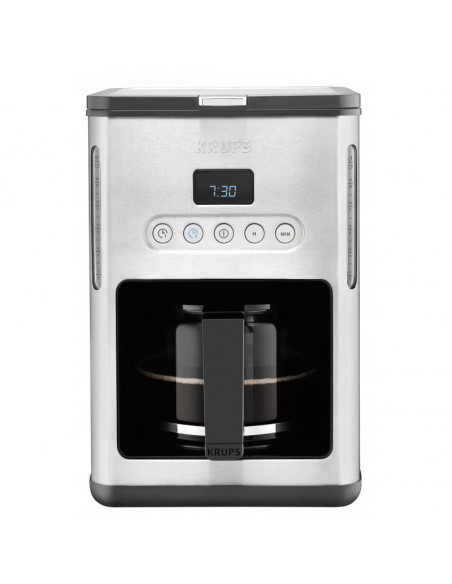 Desligar automático Corpo em inox escovado Potência: 1.000 W Capacidade do reservatório de água: 1,25 L Jarra em vidro Filtro amovível para fácil limpeza Timer: 2 definições (semana e fim-de-semana) Capacidade: 10 / 15 chávenas Função manter quente Sistema anti-gota ;