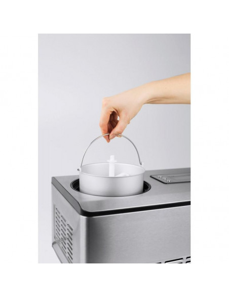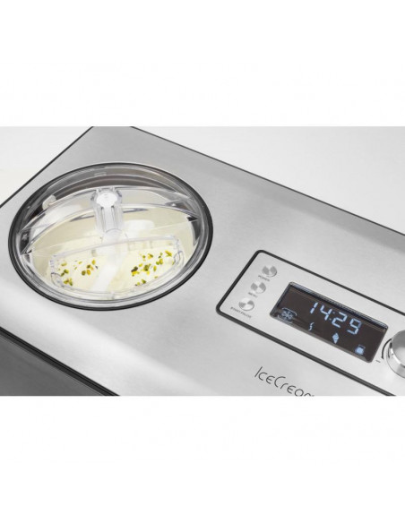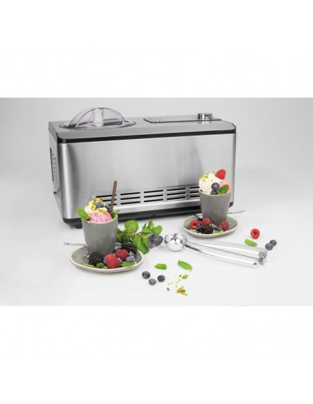 Caso IceCreamer. Tipo de produto: Máquina de gelados com compressor, Capacidade da tigela: 2 l, Tempo de preparação: 60 min. Cor do produto: Preto, Aço inoxidável. Largura: 430 mm, Profundidade: 285 mm, Altura: 280 mm. Potência: 180 W, Voltagem de entrada AC: 220 - 240 V, Frequência de entrada AC: 50 Hz ;