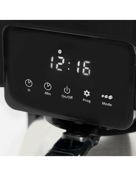 Caso Coffee Taste & Style Thermo. Tipo de produto: Máquina de café a vácuo, Tipo de cafeteira: Semiautomático, Volume do depósito de água: 1,2 l, Tipo de entrada de café: Café moído, Reservatório para café moído: Jarro, Capacidade em copos: 10 chávenas. Tipo de monitor: LED. Potência: 800 W. Cor do produto: Preto, Aço inoxidável