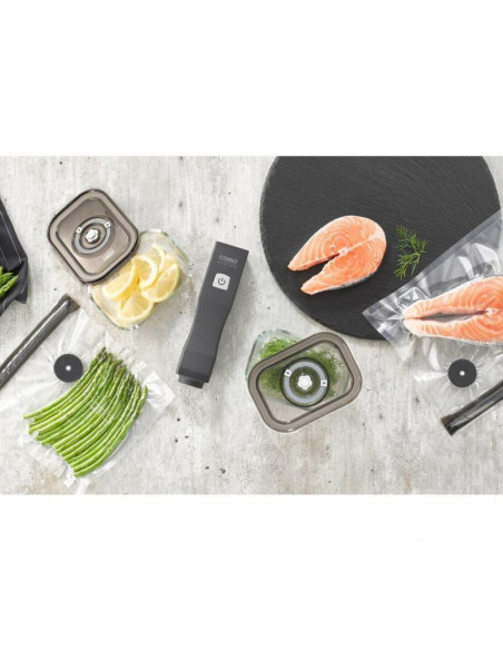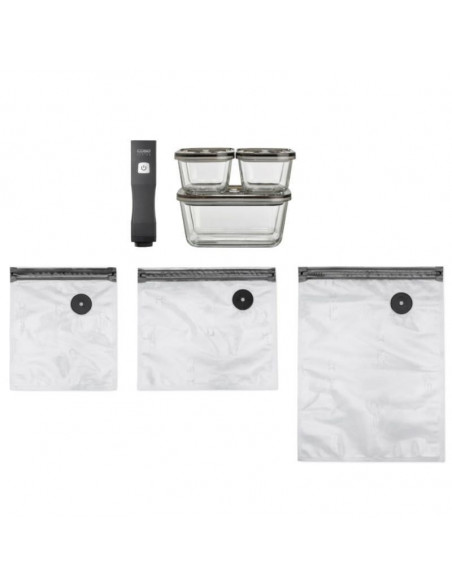 Caso Vacu OneTouch Eco-Set. Cor do produto: Preto, Vácuo: 0,4 mbar, Tipo de controlo: Botões. Tipo de monitor: LED. Largura: 45 mm, Profundidade: 45 mm, Altura: 195 mm ;