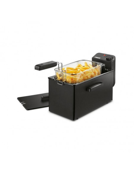 A Freidora Princess Black Flyer, modelo 01.182727.01.050, destaca-se pela sua elegante carcaça preta e pelas funcionalidades que proporcionam uma experiência de fritura mais segura e saudável. Com uma potência de 2000W, esta freidora permite preparar refeições rápidas e saborosas para toda a família. A sua capacidade de 3 litros é ideal para fritar grandes quantidades de batatas fritas, snacks e outros alimentos.