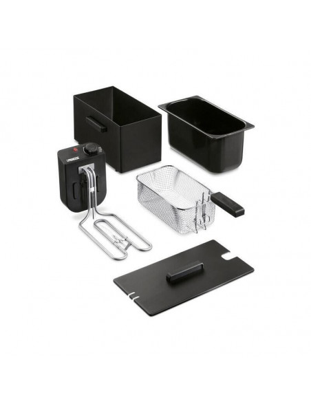 A Freidora Princess Black Flyer é uma opção elegante e segura para frituras em casa. Com 2000W de potência e capacidade de 3L, permite fritar para toda a família.  A zona fria e o filtro de segurança garantem uma fritura mais saudável e limpa, evitando respingos de óleo.