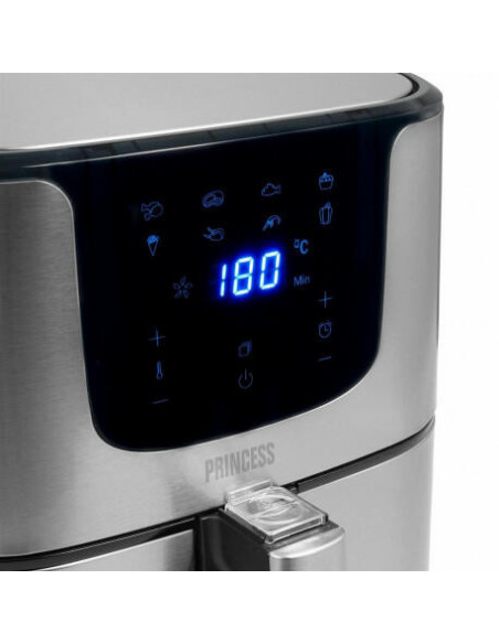 Princess 182060. Tipo de produto: Frigideira a ar quente, Capacidade: 5,5 l, Capacidade da fritadeira: 1,3 kg. Tipo de construção: Individual, Cor do produto: Prateado, Tipo de controlo: Toque. Potência: 1700 W, Voltagem de entrada AC: 220 - 240 V, Frequência de entrada AC: 50/60 Hz. Largura: 310 mm, Profundidade: 380 mm, Altura: 325 mm