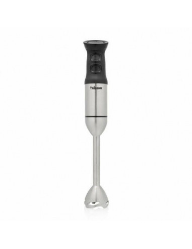 Tristar MX-4855. Capacidade da tigela: 0,6 l, Tipo de controlador de velocidade: Contínuo, Tipo de controlo: Botões. Tipo: Liquidificadora, Cor do produto: Preto, Aço inoxidável, Comprimento do fio: 1 m. Material do copo misturador: Plástico, Material do corpo do produto: Aço inoxidável. Potência: 1200 W, Fonte de alimentação: AC, Voltagem de entrada AC: 230 V. Pentes para aparar: 1 unidade(s), Conteúdo da embalagem: Tristar MX-4855 Hand Blender, measuring cup, 4-bladed knife attachment and instructions.