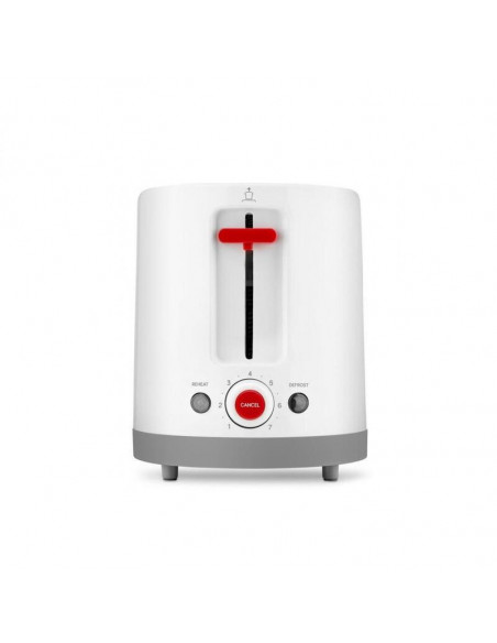 Tostadora Ufesa TT7375, com 2 ranuras e 7 níveis de tostagem. Design moderno em cinza, vermelho e branco.