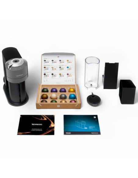 De’Longhi Nespresso Vertuo ENV 120.GY. Tipo de produto: Máquina de café de cápsulas, Tipo de cafeteira: Semiautomático, Volume do depósito de água: 1,1 l, Tipo de entrada de café: Cápsula de café, Reservatório para café moído: Copo, Capacidade em copos: 1 chávenas. Potência: 1500 W. Cor do produto: Cinzento
