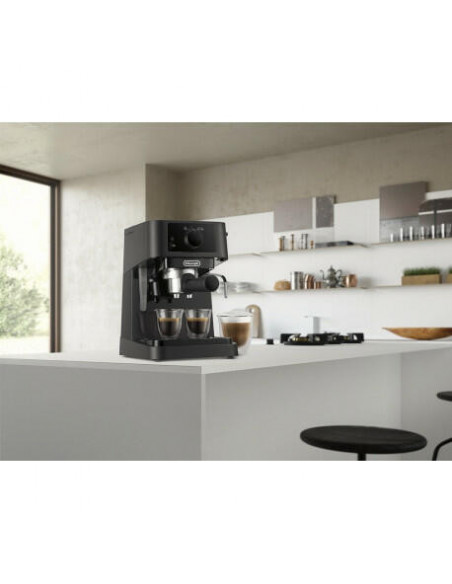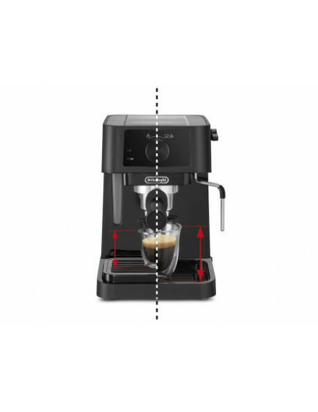 De’Longhi Stilosa EC235.BK. Tipo de produto: Máquina espresso, Tipo de cafeteira: Manual, Volume do depósito de água: 1 l, Tipo de entrada de café: Doses individuais, Café moído, Reservatório para café moído: Copo, Capacidade em copos: 2 chávenas. Potência: 1100 W. Cor do produto: Preto