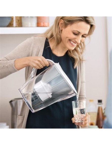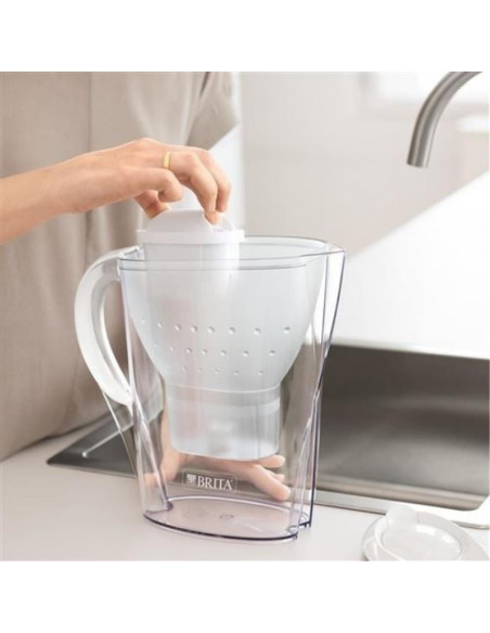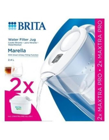 Brita Marella. Tipo de filtro de água: Filtro de água do distribuidor, Cor do produto: Transparente, Branco, Volume do depósito de água: 2,4 l. Largura: 258 mm, Profundidade: 105 mm, Altura: 258 mm. Quantidade de cartuchos: 2 unidade(s), Quantidade por conjunto: 1 unidade(s) ;