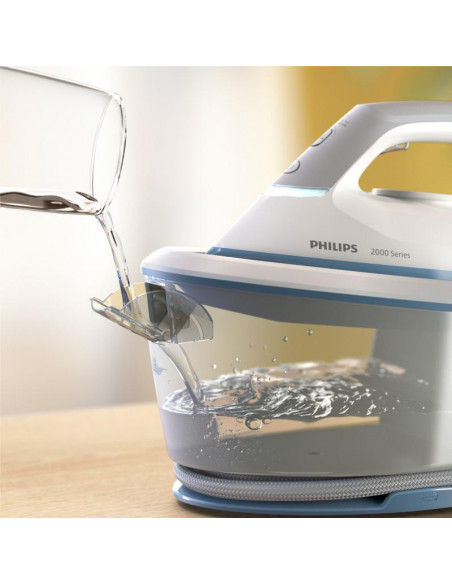 Philips 2000 series PSG2000/20. Potência do ferro: 2400 W, Desempenho de aumento de vapor: 300 g/min, Tipo de base de ferro: Base de cerâmica. Comprimento do fio: 1,6 m, Comprimento da mangueira: 1,4 m. Largura: 120 mm, Profundidade: 315 mm, Altura: 285 mm. Comprimento da embalagem: 230 mm, Profundidade da embalagem: 395 mm, Altura da embalagem: 308 mm ;