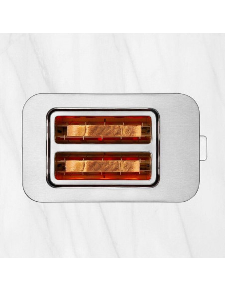 Duas ranuras amplas acomodam confortavelmente fatias de pão de diferentes tamanhos, garantindo um tostado uniforme e dourado em cada fatia. O controlo é intuitivo, através de um ecrã LCD digital que permite seleccionar o nível de tostado ideal entre sete opções diferentes. Desta forma, pode ajustar o nível de tostado de acordo com a sua preferência, desde um leve aquecimento a um tostado mais escuro e crocante.