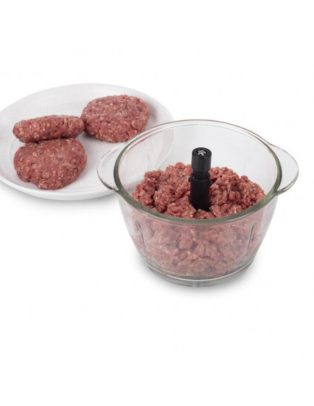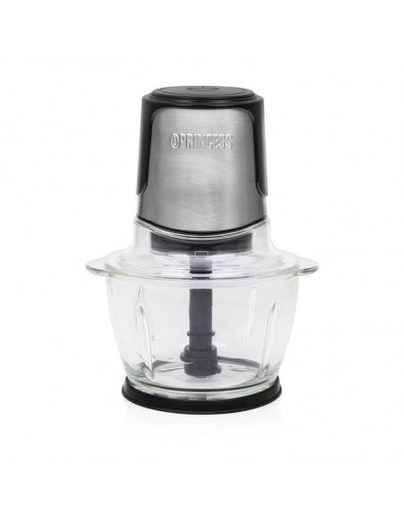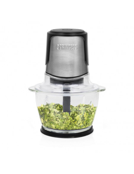 A picadora Princess 221051, também conhecida como Princess Power, é um utensílio de cozinha potente e versátil, ideal para preparar uma variedade de receitas.  Com 300W de potência e duas lâminas robustas de aço inoxidável, pica facilmente ingredientes como verduras, ervas aromáticas, frutos secos, frutas e muito mais.  O seu potente motor permite picar ingredientes com diferentes consistências, desde pedaços grossos até purês finos, dependendo do tempo de processamento.  A jarra de vidro de 1 litro de capacidade permite preparar grandes quantidades de uma só vez, ideal para ocasiões especiais ou para quem gosta de preparar as refeições com antecedência.  A utilização é simples e intuitiva: basta pressionar o botão para iniciar o processo de picagem.  Para uma limpeza eficiente, a picadora Princess desmonta-se facilmente, e todas as partes são aptas para a máquina de lavar louça, facilitando a manutenção e higienização. A base antideslizante garante estabilidade durante o funcionamento, prevenindo acidentes e garantindo segurança na sua cozinha.  A picadora Princess é sinónimo de praticidade e eficiência na cozinha, poupando tempo e esforço na preparação das refeições, permitindo-lhe dedicar mais tempo ao que realmente importa: desfrutar dos seus pratos.