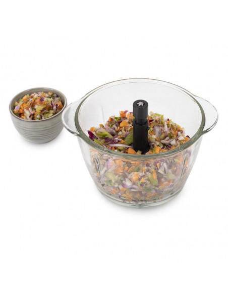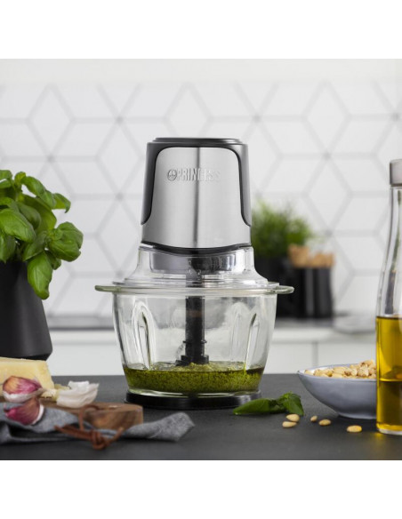 A Picadora Princess Power é a solução perfeita para picar ingredientes rapidamente e com facilidade. Com 300W de potência, duas lâminas de aço inoxidável e um recipiente de vidro de 1L, prepara molhos, purés e muito mais. Todas as partes são laváveis na máquina de lavar louça.