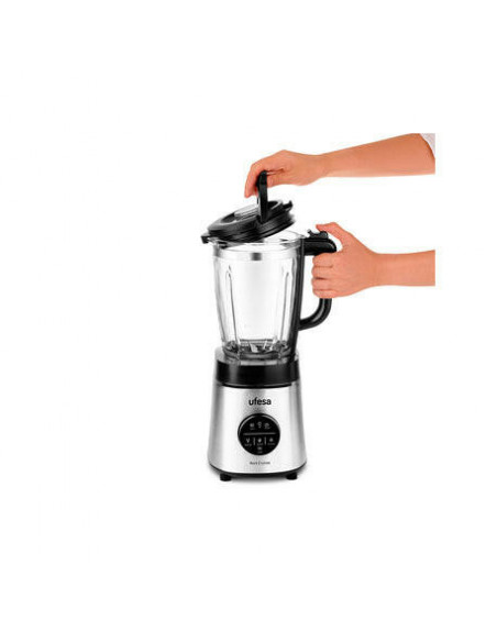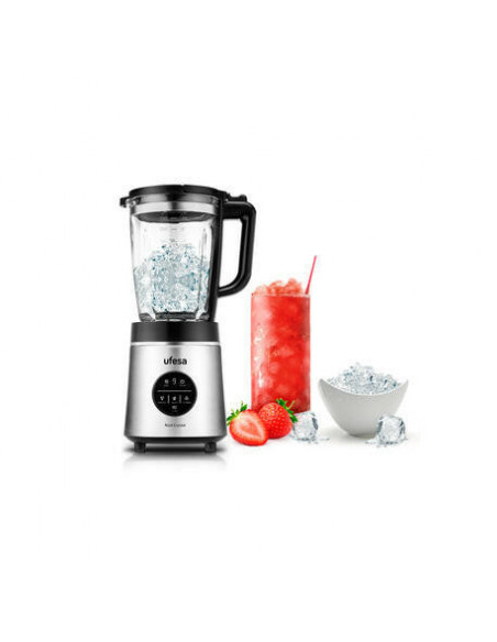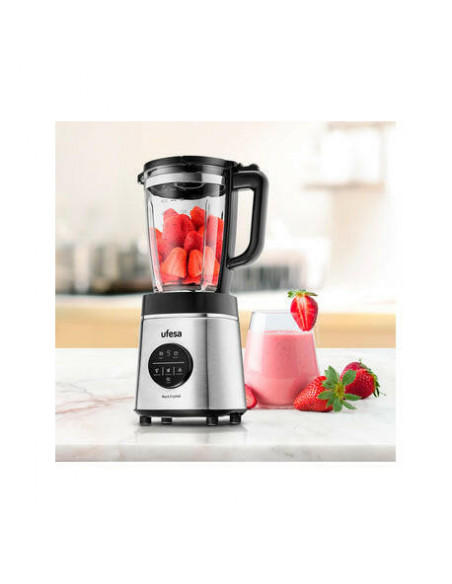 Ufesa Rock Crystal. Capacidade da tigela: 1,75 l, Tipo de controlo: Toque, Material do jarro: Vidro. Tipo: Liquidificador, Cor do produto: Preto, Aço inoxidável. Material da lâmina: Aço inoxidável. Potência: 1800 W, Fonte de alimentação: AC