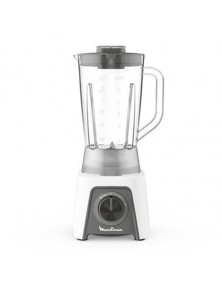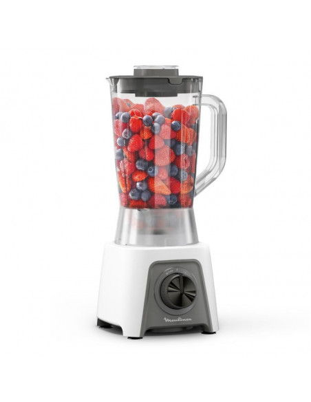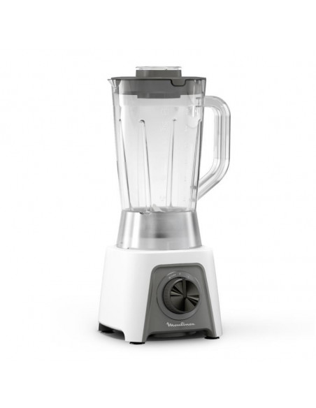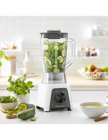 Moulinex Blendeo+ LM2C01. Capacidade da tigela: 1,5 l, Tipo de controlo: Rotativo. Tipo: Liquidificador de mesa, Cor do produto: Branco, País de origem: China. Material do copo misturador: Plástico. Potência: 450 W, Fonte de alimentação: AC. Largura: 170 mm, Profundidade: 170 mm, Altura: 379 mm ;