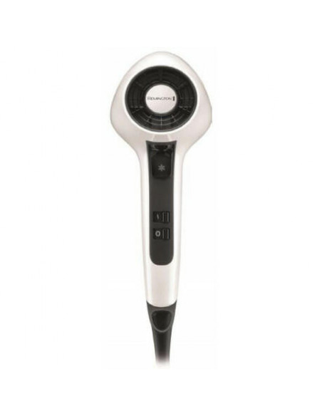Remington D7779. Fluxo de ar: 110 m³/h. Cor da caixa: Preto, Branco, Coloração de superfície: Monótono, Pendurado como: Gancho. Potência: 1800 W. Largura do produto: 269 mm, Profundidade da Unidade: 133 mm, Altura da Unidade: 375 mm. Largura do bocal: 1,1 cm