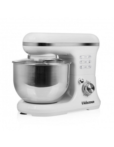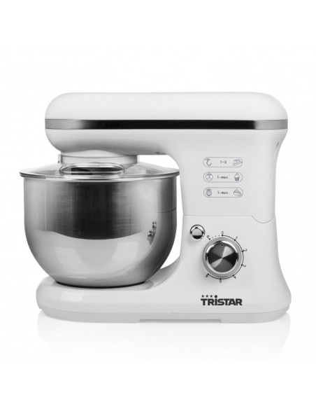 Tristar MX-4817. Capacidade da tigela: 5 l, Cor da caixa: Branco. Material da taça: Inox, Material do corpo do produto: Plástico. Potência: 1200 W. Peso do produto: 4,5 kg. Largura: 251 mm, Profundidade da caixa: 343 mm, Altura da caixa: 416 mm ;